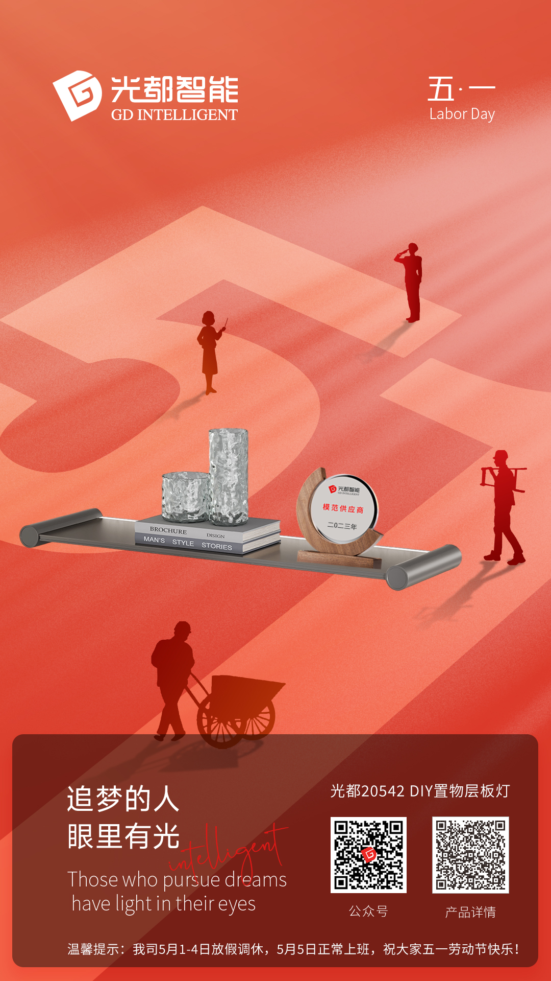 光都5月1-4日放假調(diào)休,2024年5月5日正常上班,光都照明攜光都智能和光都光電全體同仁祝新老伙伴朋友家人們五一勞動(dòng)節(jié)快樂(lè)!