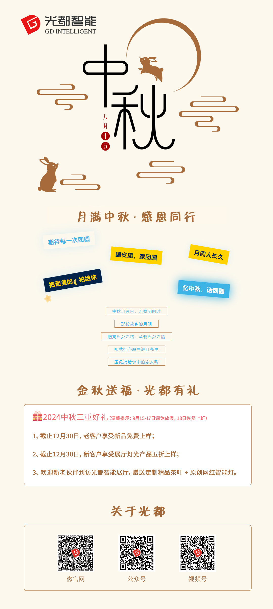 華燈初上,月圓人聚;舉杯邀明月,共慶中秋時(shí)!在這美好的時(shí)光里,我們分享著歡樂(lè)與感動(dòng),把最美好的祝福送給身邊的親友,愿每一個(gè)中秋佳節(jié),都能感受到家的溫暖、愛(ài)的力量和友誼的永恒!海上生明月,天涯共此時(shí),伙伴朋友家人們,中秋節(jié)快樂(lè)!幸福安康!