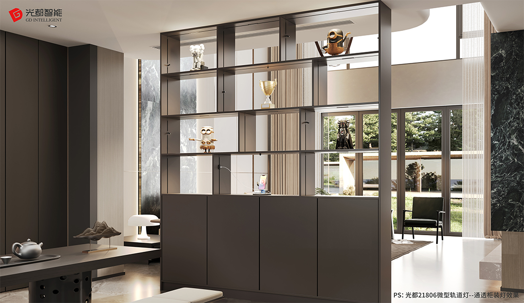 光都21806嵌入式微型軌道燈系柜類無主燈的創(chuàng)造性應(yīng)用,通過嵌入12*12微型導(dǎo)電軌道,將可調(diào)角度的筒射燈,微型格珊燈和泛光燈按需要卡入軌道點亮,導(dǎo)電軌采用三芯線路方案,不分正負(fù)極,燈具可自由調(diào)換,內(nèi)置手掃感應(yīng)器控制開/關(guān)和調(diào)節(jié)燈光,可用L型轉(zhuǎn)角接頭和對接頭構(gòu)造不同的造型,巧妙藝術(shù)地玩轉(zhuǎn)點/線光源,營造新穎非凡的柜燈效果,可廣泛應(yīng)用于通透柜、櫥窗柜、開放柜、裝飾柜、餐邊柜、茶室、電競房和手辦空間等場景,極大地豐富了燈光內(nèi)涵和提升情緒價值。