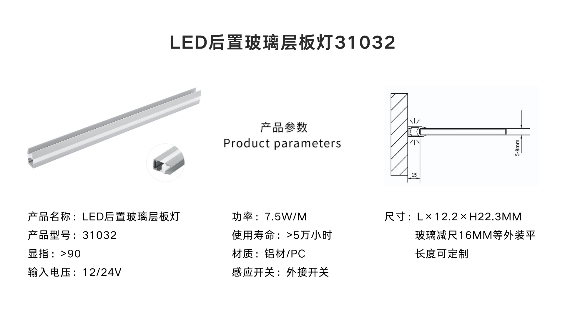LED卡裝后置層板燈31034