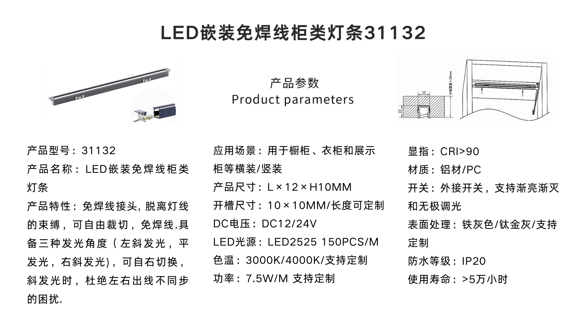 LED嵌裝燈線分離&免焊線柜類燈條31132K