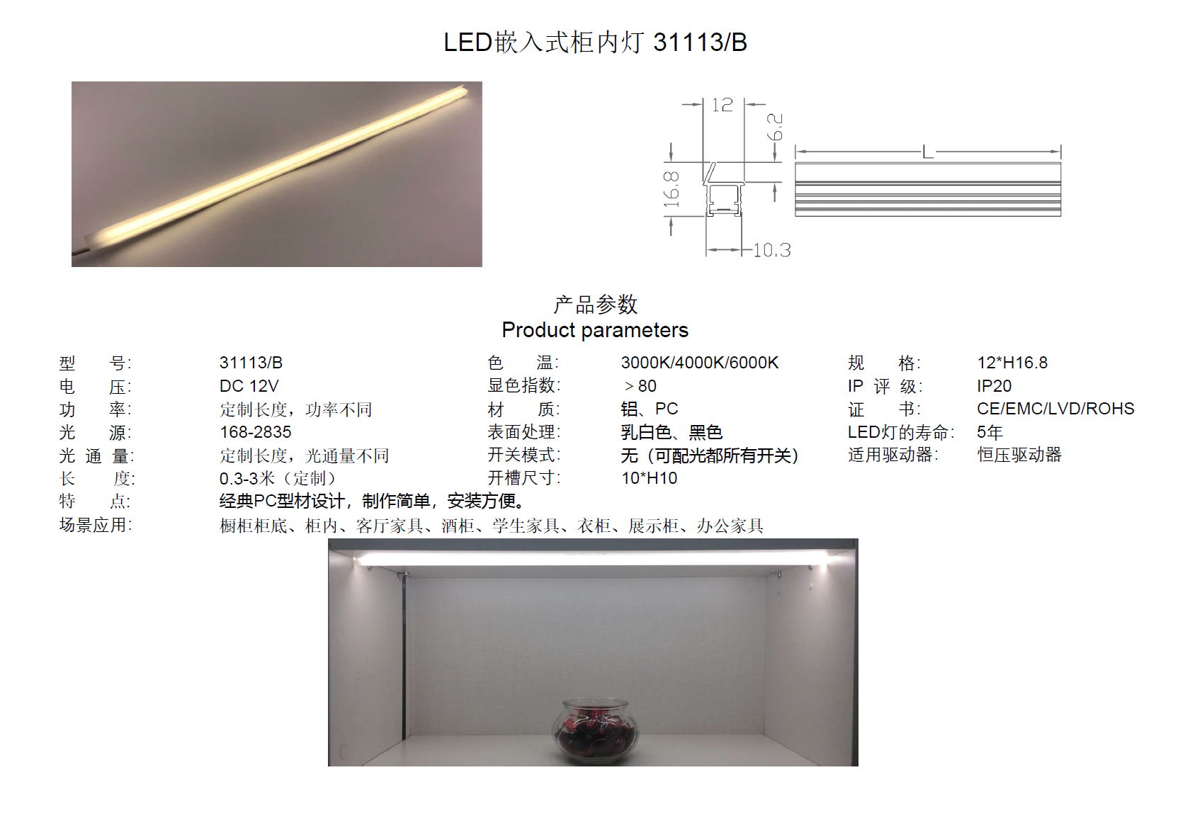 LED嵌入式柜內(nèi)人體紅外線感應(yīng)燈 31018P