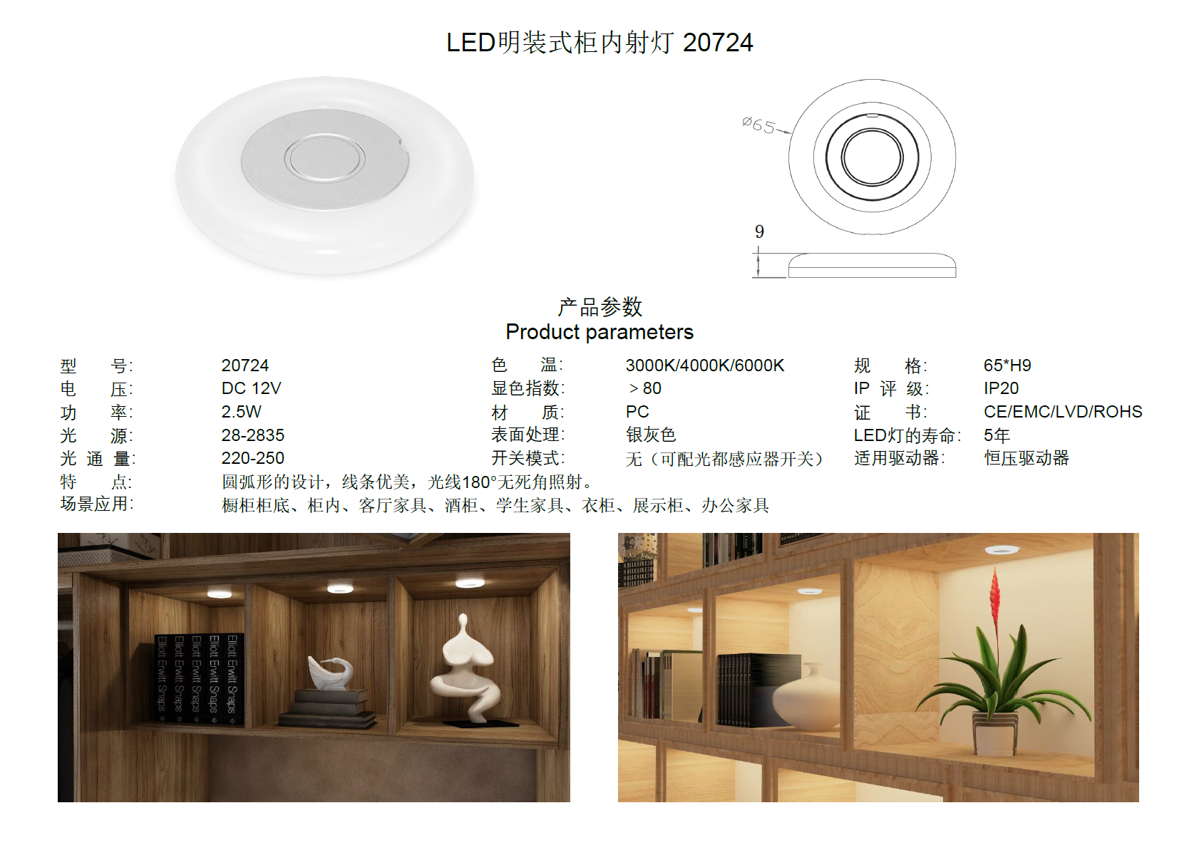 LED明裝式柜內(nèi)人體紅外線(xiàn)感應(yīng)燈 20724P