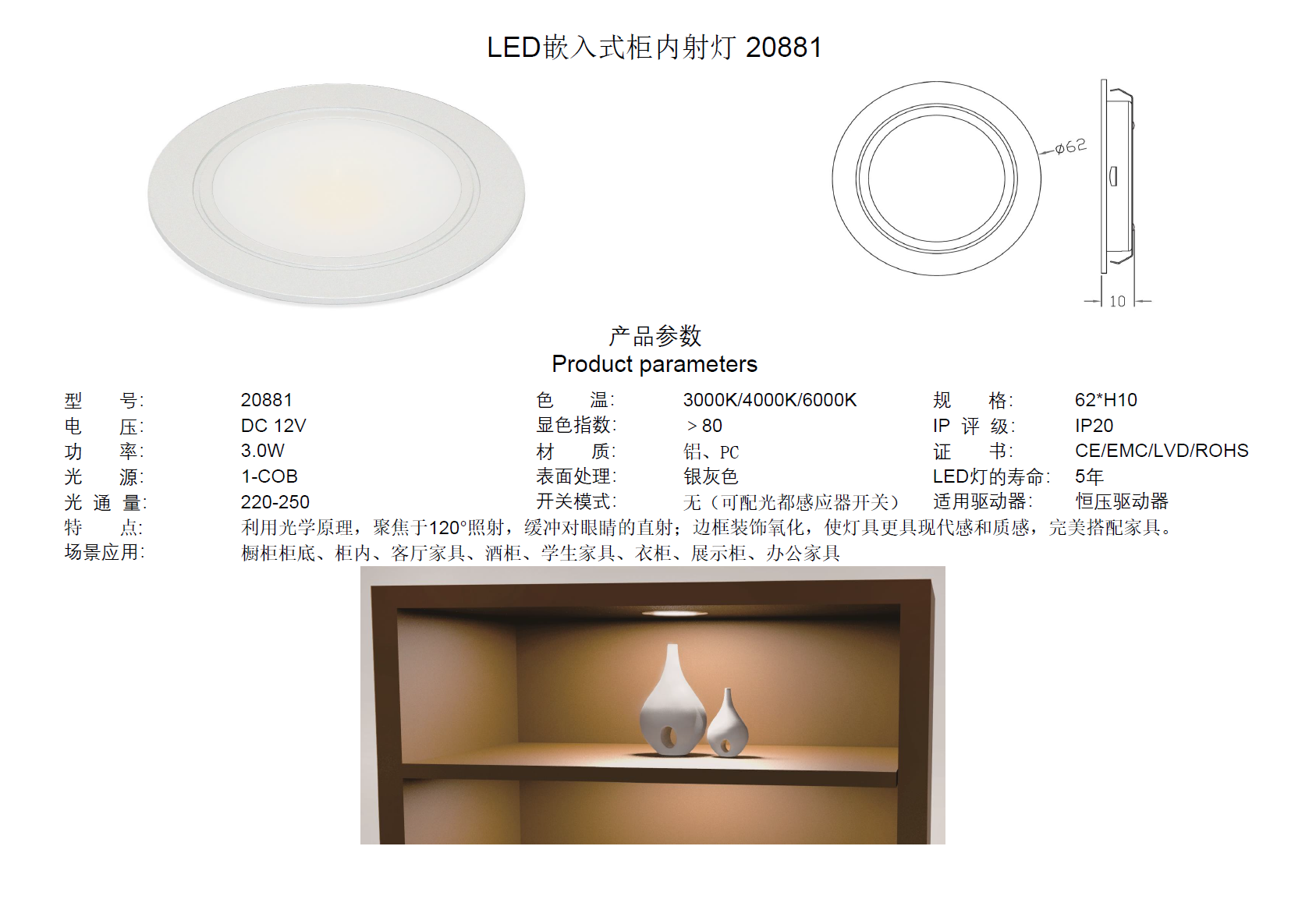 LED明裝式柜內(nèi)人體紅外線感應燈 20724P