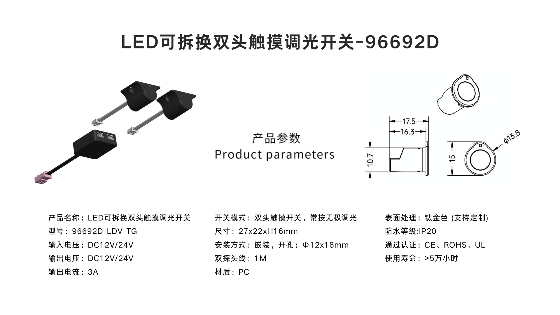 LED可拆換雙頭門控感應(yīng)開關(guān)96692W