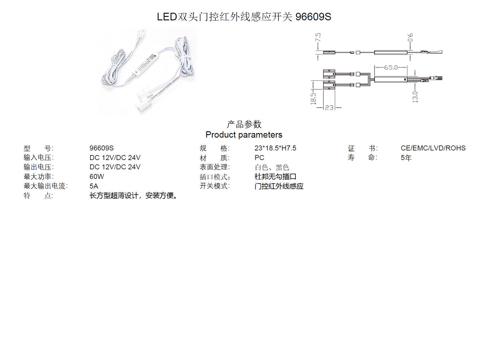 LED雙頭門控紅外線感應(yīng)開關(guān) 96609C