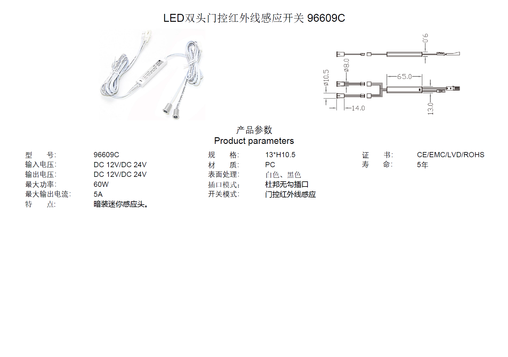 LED雙頭門控紅外線感應(yīng)開關(guān) 96609S
