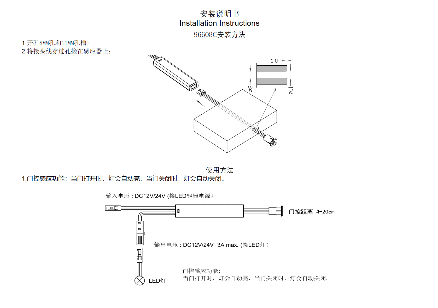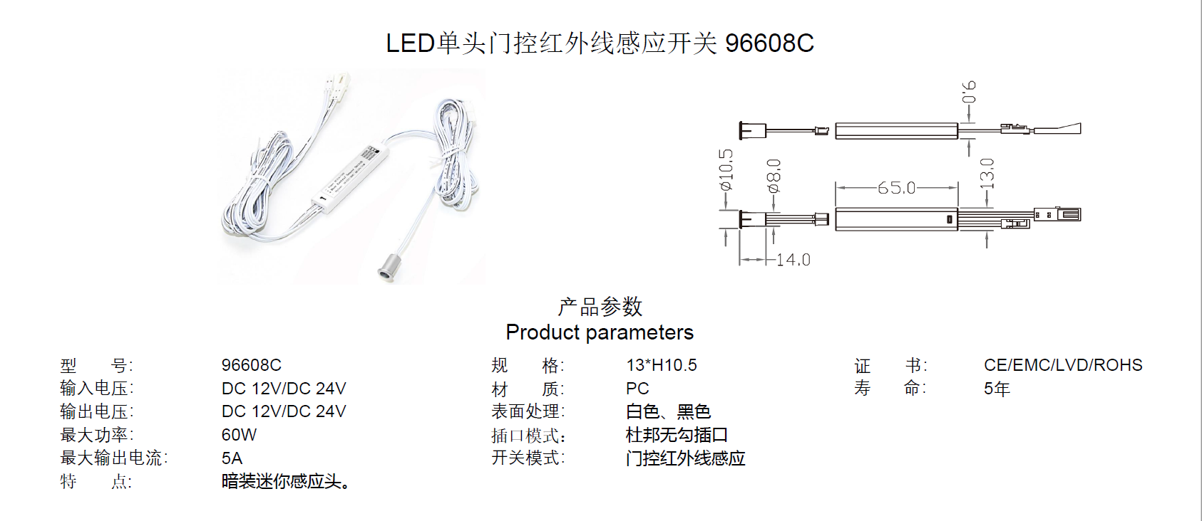 LED單頭門控紅外線感應(yīng)開關(guān) 96608S