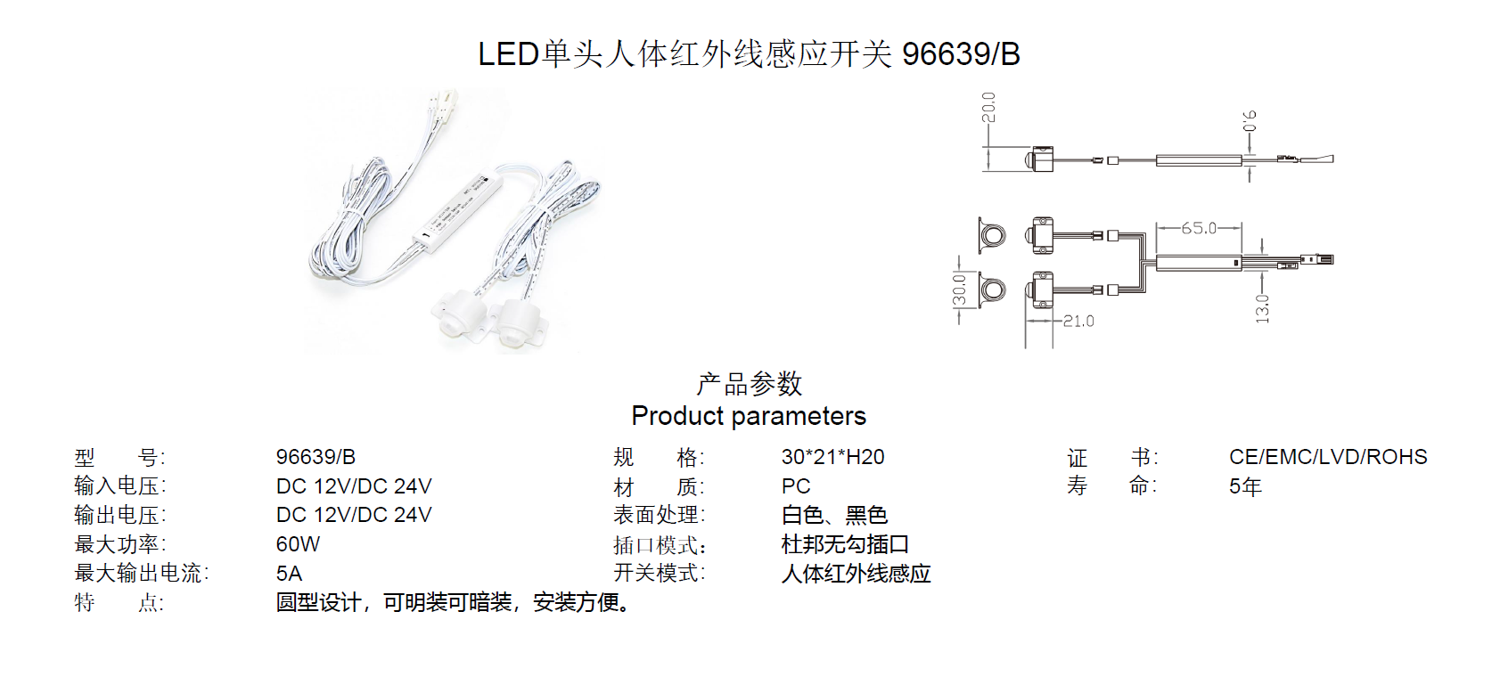 LED單頭人體紅外線感應(yīng)開關(guān) 96648P