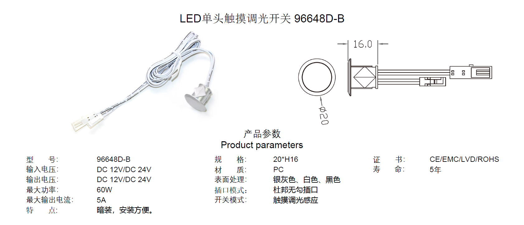 LED單頭觸摸調(diào)光開關(guān) 96648D