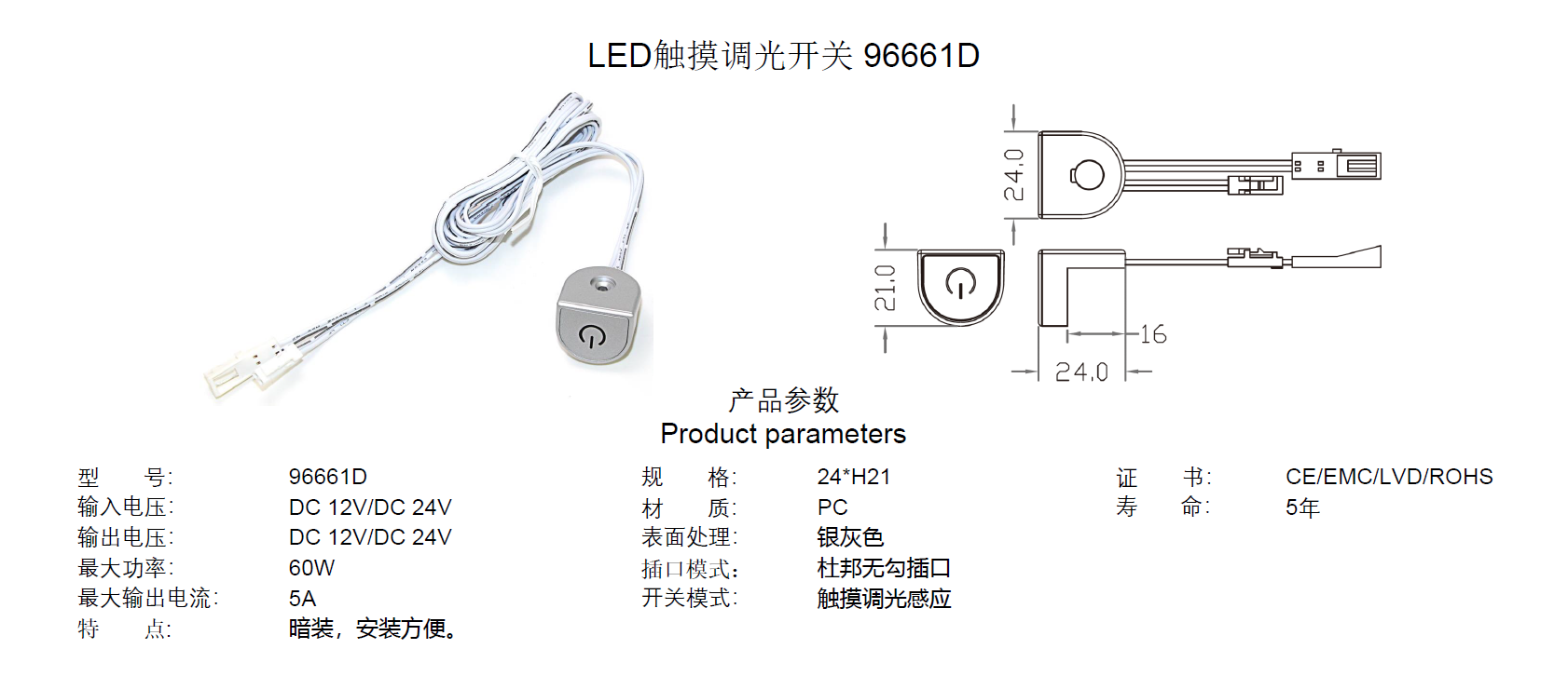 LED單頭觸摸調(diào)光開關(guān) 96648D-B