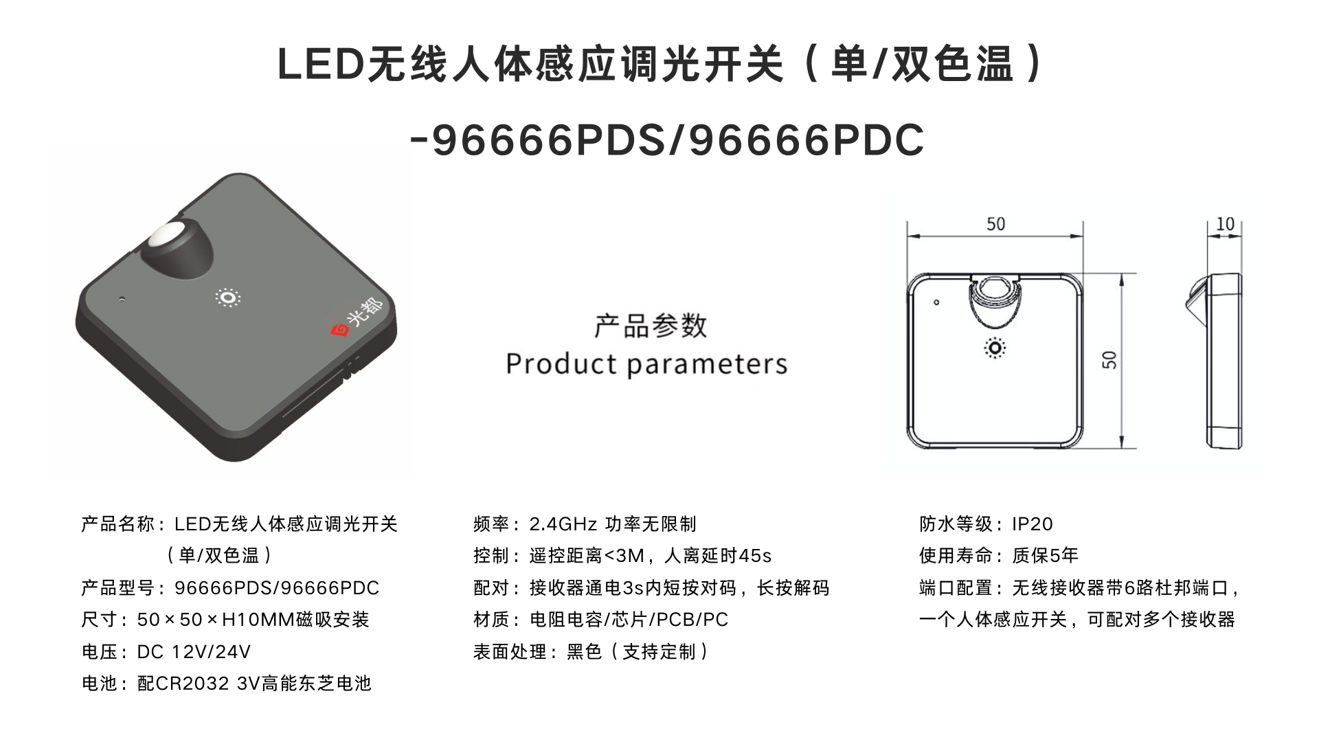LED無線觸摸感應(yīng)調(diào)光開關(guān)(單/雙色溫)96668DS/96668DC