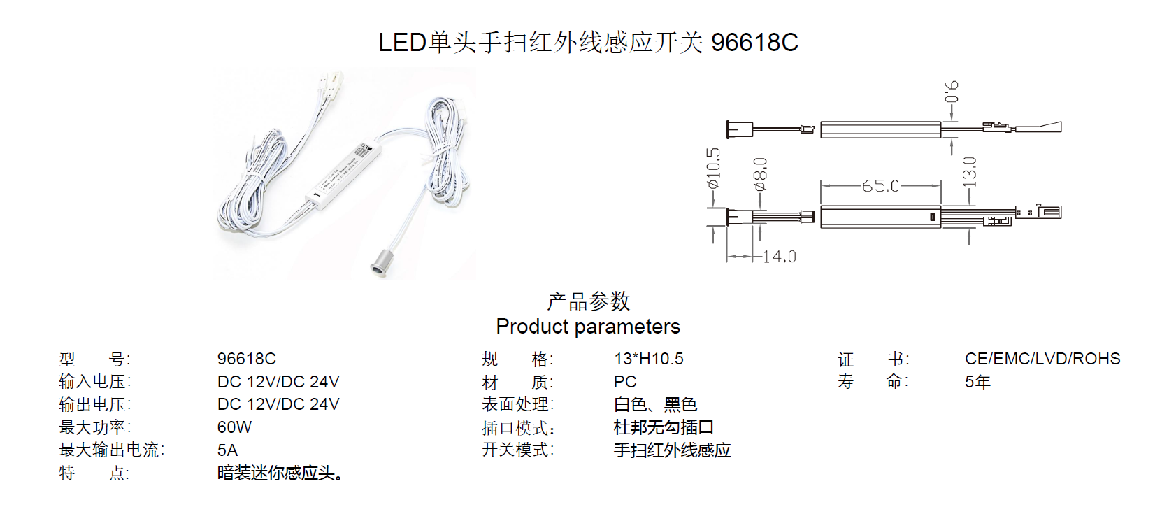 LED雙頭手掃紅外線感應(yīng)開(kāi)關(guān) 96619C